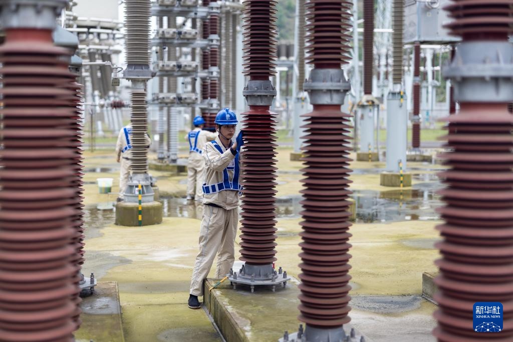 4月15日,检修人员在“疆电入渝”工程渝北换流站直流场及接地极区域检修。新华社记者 黄伟 摄