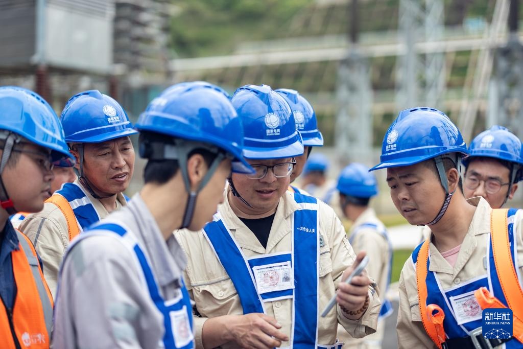 4月15日,检修人员在“疆电入渝”工程渝北换流站查看检修任务。新华社记者 黄伟 摄
